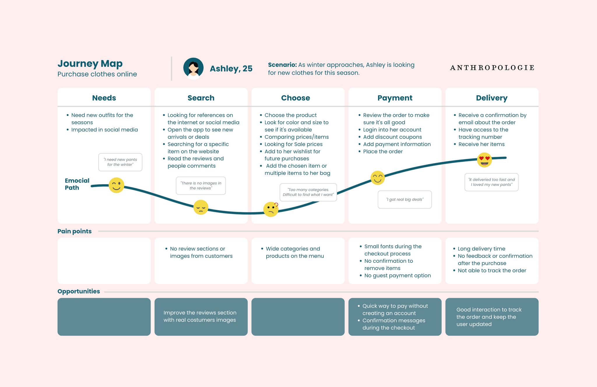 We identified common frustrations, including difficulties navigating the website, unclear product categorization, and a lack of personalized recommendations. These insights allowed us to highlight usability issues and areas for improvement, guiding our recommendations to enhance the overall user experience.