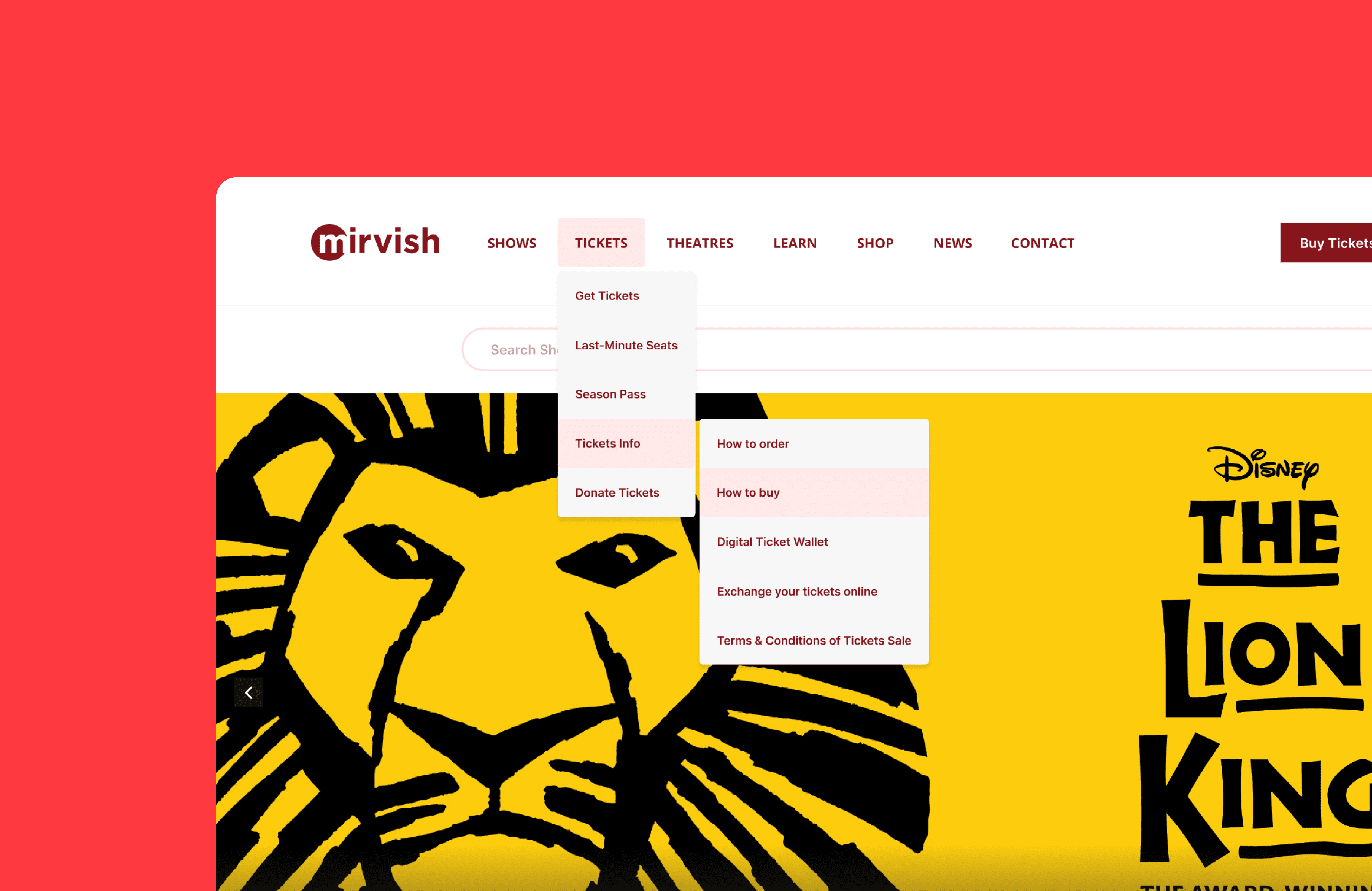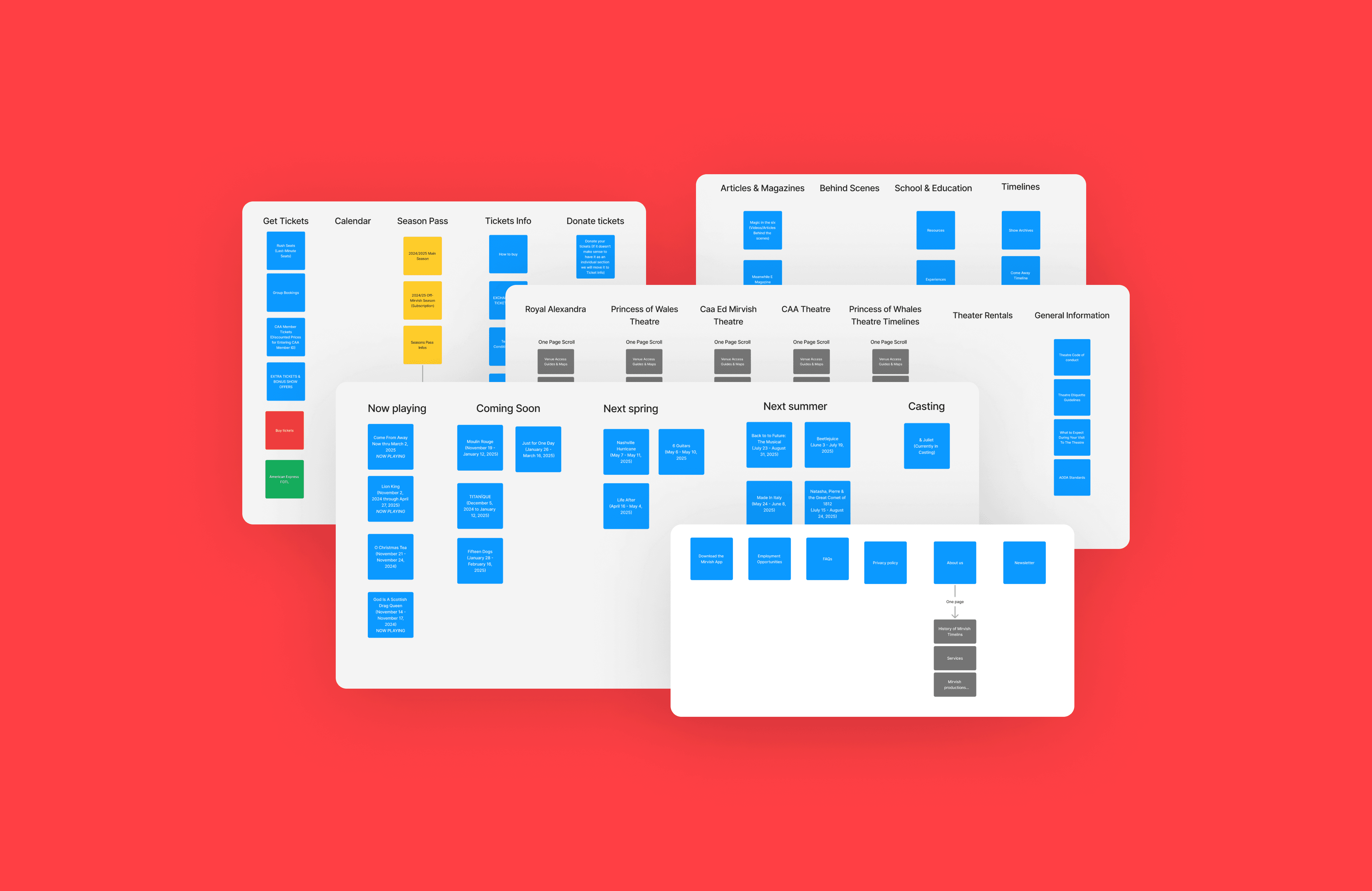 The Mirvish project aimed to enhance the information architecture of the Mirvish website to improve ticket sales. By analyzing the site's structure and user interactions, the project focused on optimizing navigation, labeling and content organization to create a more intuitive and user-friendly experience.